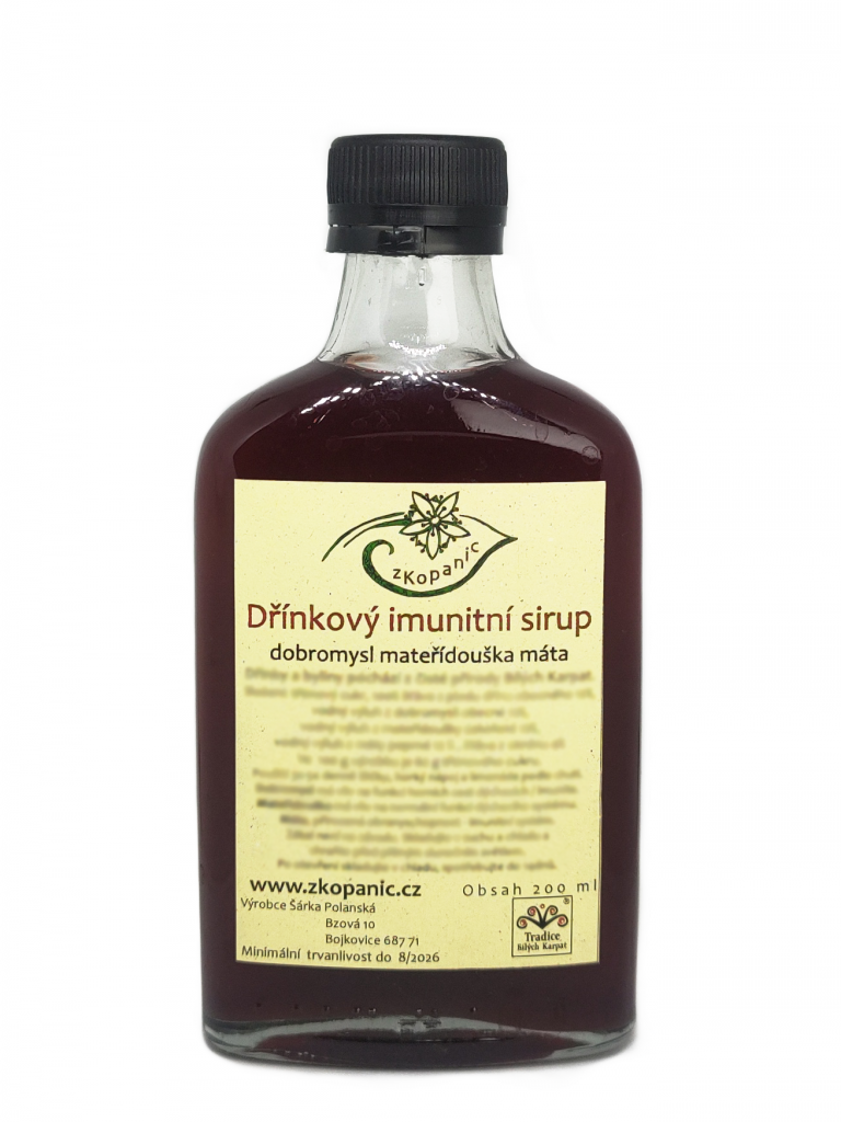 Dřínkový imunitní sirup dobromysl mateřídouška máta