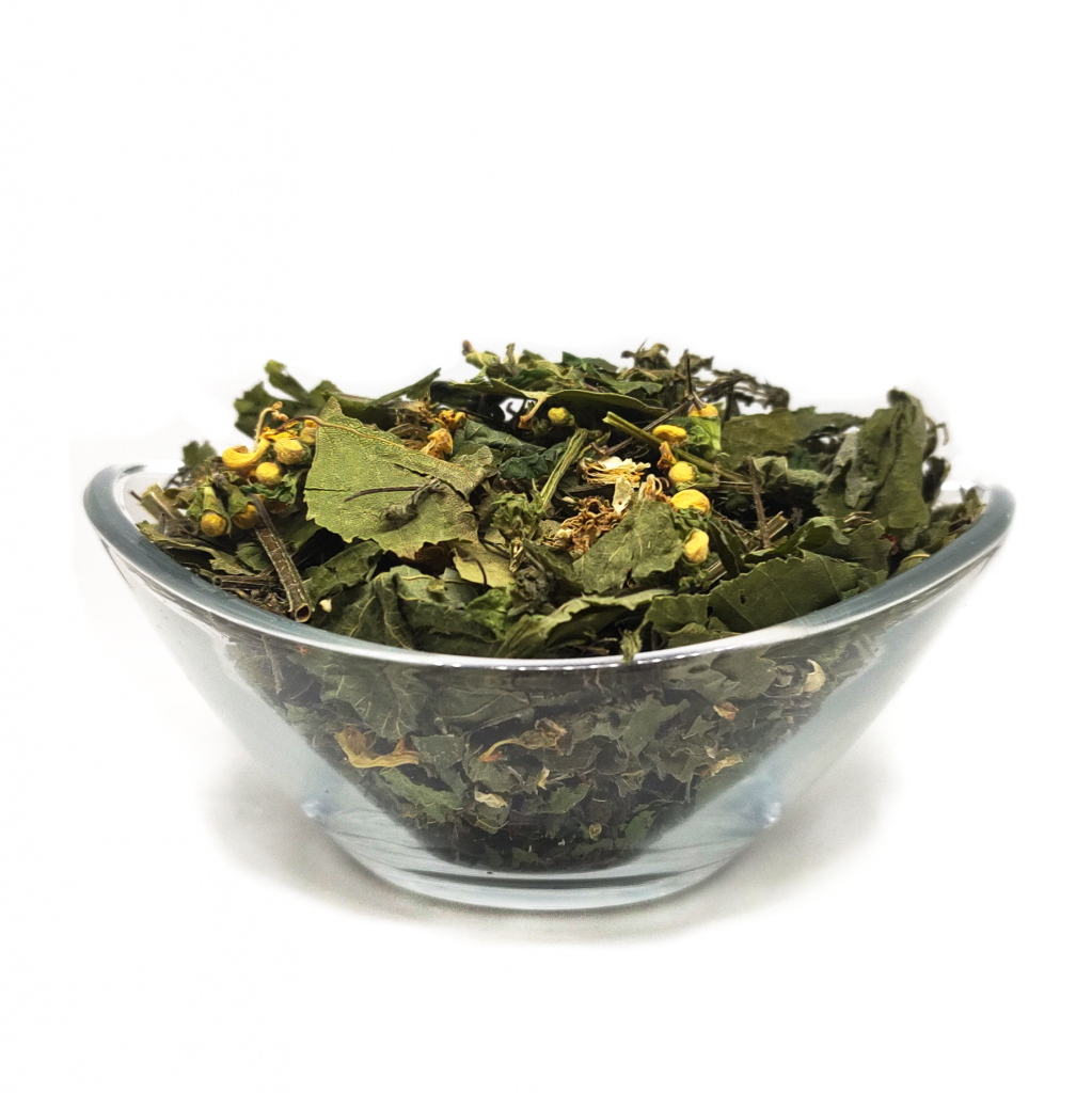 Směs bylin z přírody, velké množství svízele přítuly a březových, mladých lístků.