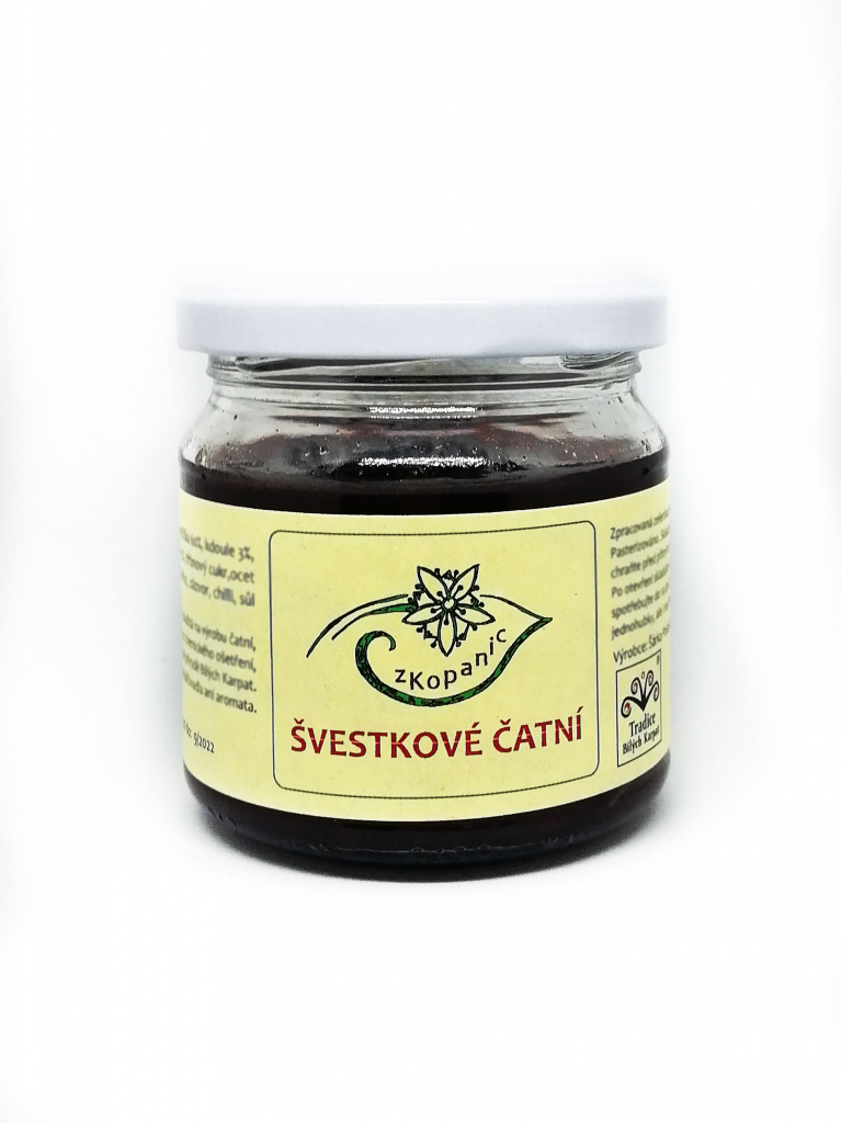 Švestky rostou v našem sadě v Bílých Karpatech. Čatní neobsahuje zahušťovadla ani aromata.
